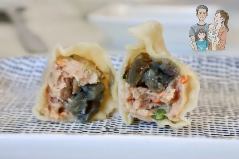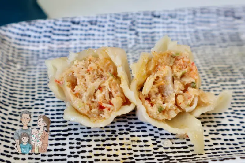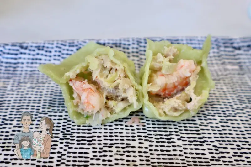 這次吃了蔥花、鮮蝦、玉米鮮蝦,我個人很喜歡小朋友口味:玉米鮮蝦,玉米的甜加上手剝的蝦子,吃的蝦子的口感就知道不是那種泡水蝦,是紮實的那種。內餡很飽滿、皮稍有厚度,一口塞下是可以塞滿嘴的。