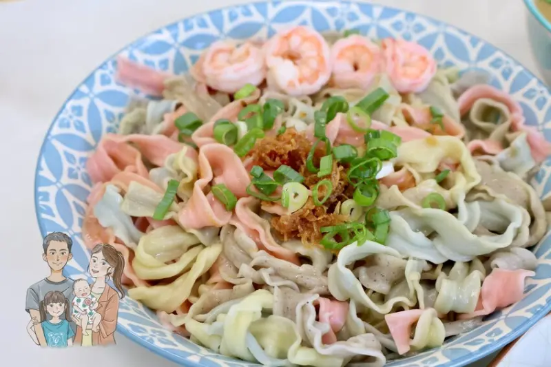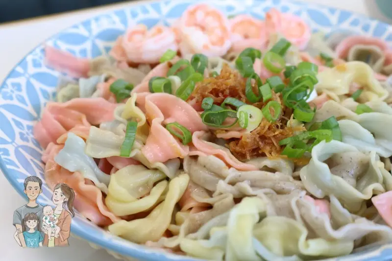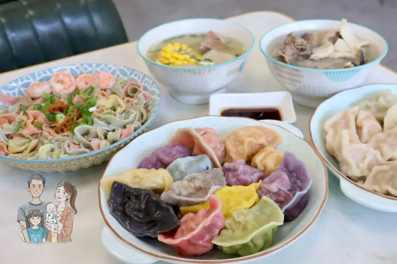 除了彩色水餃、白皮水餃,還有彩色麵條及千張餃可以吃!