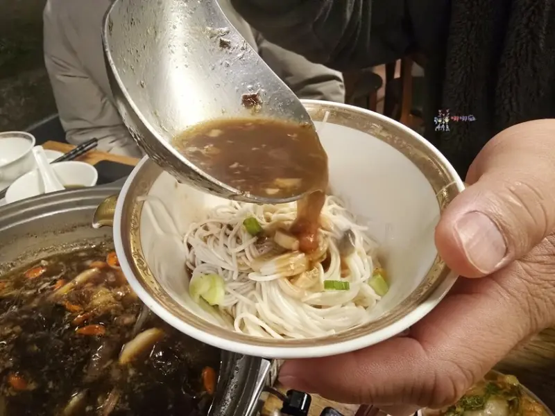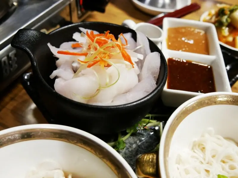 店家建議先喝湯,之後涮魚肉和魚筋,魚肉吃起來Q彈鮮嫩,魚筋則是帶點脆脆的口感。