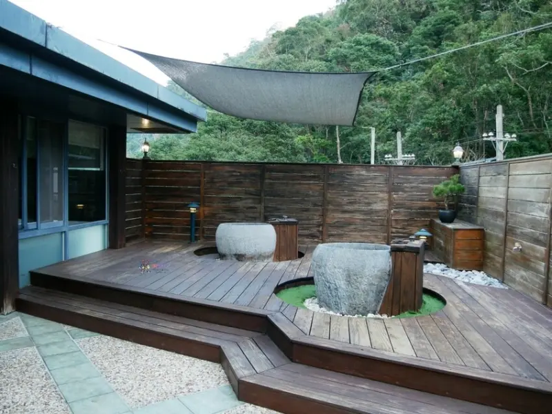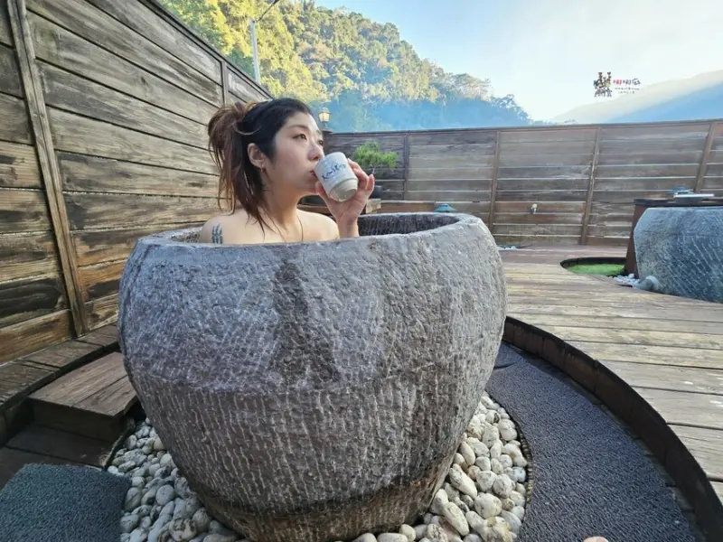 室外則是我很喜歡的地方,陽台區竟然有單人泡湯的石甕!