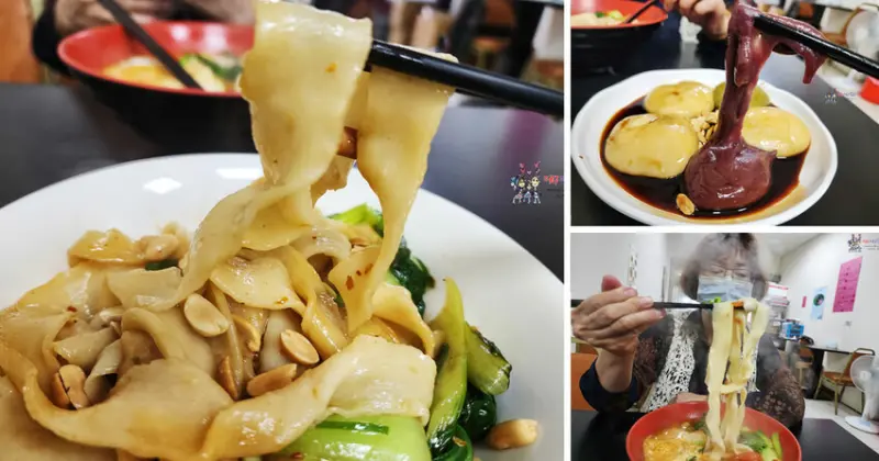 【新竹美食】竹東中央市場《張記美食》一口吃不完一條麵的河南扯麵和軟Q客家麻糬牛汶水