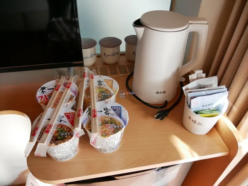 基本的電視、咖啡、飲料等備品都放在旁邊,讓我們驚喜的是竟然還有泡麵!