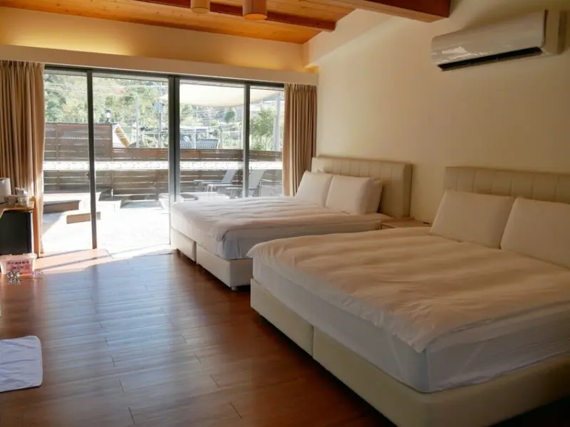 慕星裡面的設施有兩張雙人床、湯屋還有一個戶外露臺,剛一打開門就覺得這房間好棒啊!晚上來泡一定更有氣氛。