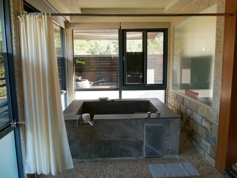 泡湯池的部分我覺得看起來很整潔乾淨,不會看起來老老舊舊的,還有個浴簾的設計可以隔開視線,既保留了隱私也成全了家人好友一起泡湯的歡樂。