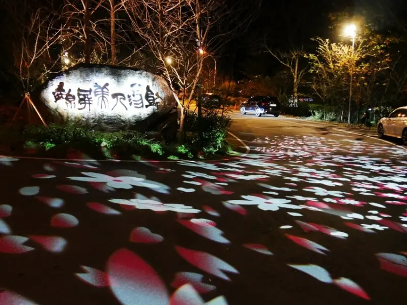到了晚上停車場入口會有迎賓花路,用光影打出櫻花的樣子,看起來蠻美的,很適合來這邊拍個短影片、限動什麼的。錦屏美人湯館我覺得是蠻適合常常到訪的溫泉館,無論是湯屋或是露天風呂都很不錯,有時間的話我會比較傾向下午就去露天風呂泡湯一直玩到晚上,整個感覺就是非常愜意放鬆啊!