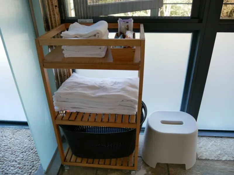室外湯池會提供一條大毛巾,也可以自備,攜帶的包包、用不到的用品建議可以放在置物櫃裡面,輕輕鬆鬆的去泡湯就好了。