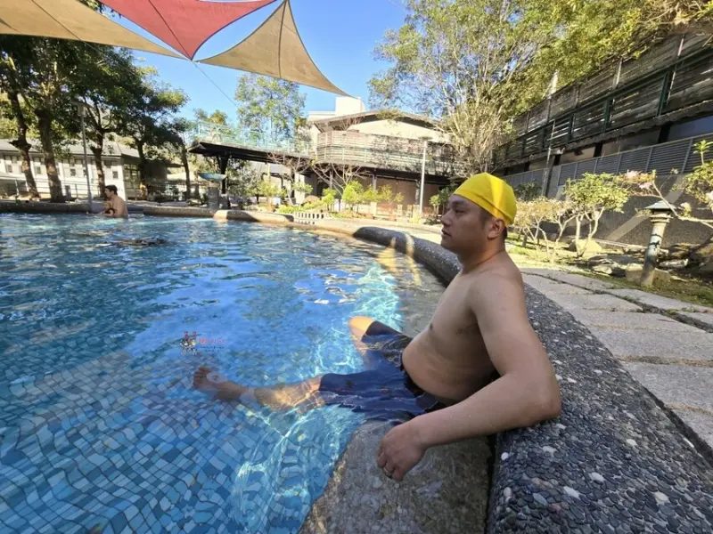 一般來說大多數人都會待在戶外高低溫池區,由出水口開始溫度最高,一路往低處溫度就越低。池區還蠻大的,我看人少的時候還有人在裡面游泳。