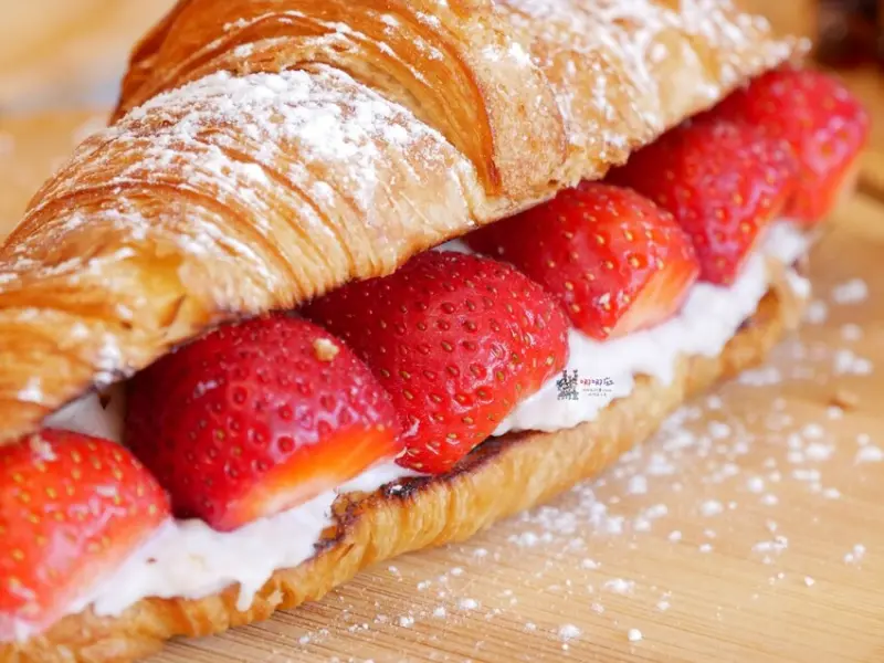 可頌本身很酥脆,裡面的草莓給的也蠻有誠意的,搭配芋泥吃起來酸甜又帶有綿密的芋頭香氣,我覺得如果還有的話很值得點。