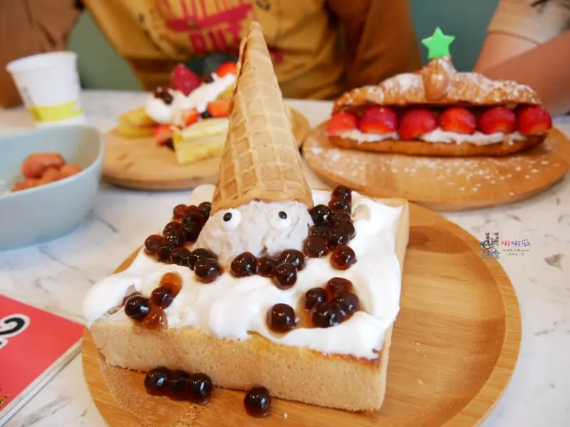 最吸引我的是這個芋泥奶蓋厚片,有芋泥有奶蓋就算了,還放了甜筒和眼睛,整個可愛到爆炸!