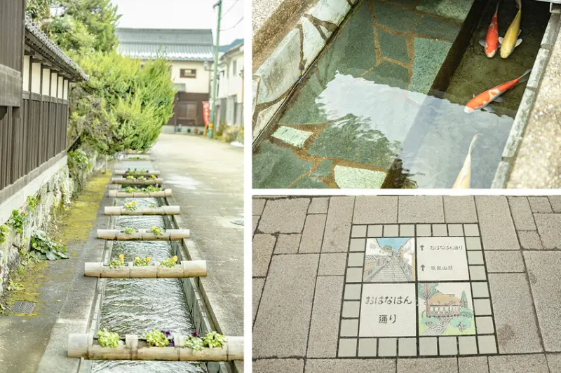 ▲在城下町隨處可見精心的造景和彩繪地磚,水溝裡的水非常的清澈,鯉魚養得又大又健康!