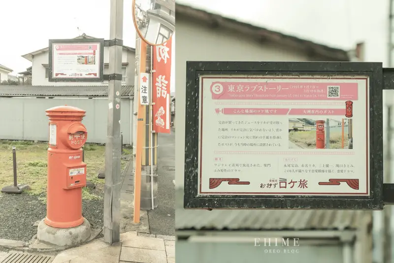 目前在大洲市街道可以看到這個日本早期的圓柱形郵筒,就在紅磚倉庫旁,劇中的女主角就是在這裡寄信的。