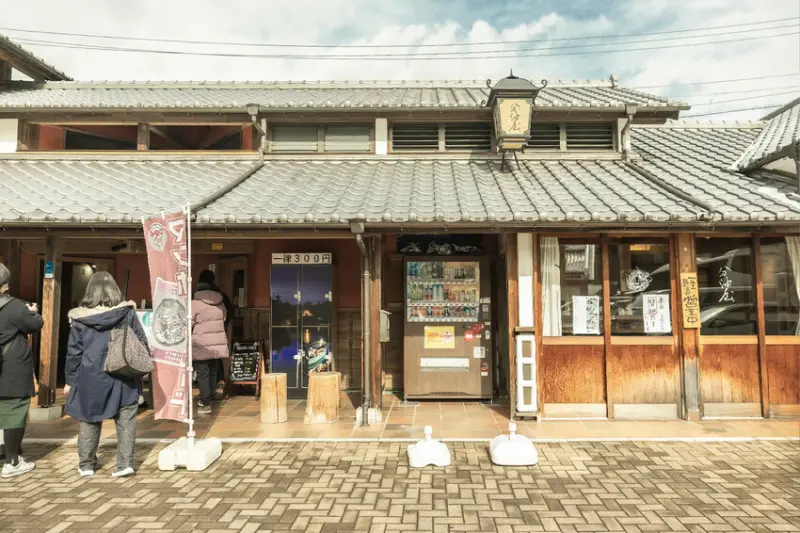 來到大洲我真的推薦你們一定要來吃這家!是我會一直想再吃的店!這裡原本是從幕府時期就作為旅館使用的歷史遺產,於2012年重新修復成為餐廳,兩層樓的建築看起來就真的很像以前的旅館格局,透過窗戶還可以欣賞到庭院、大洲城以及肱川的美景~