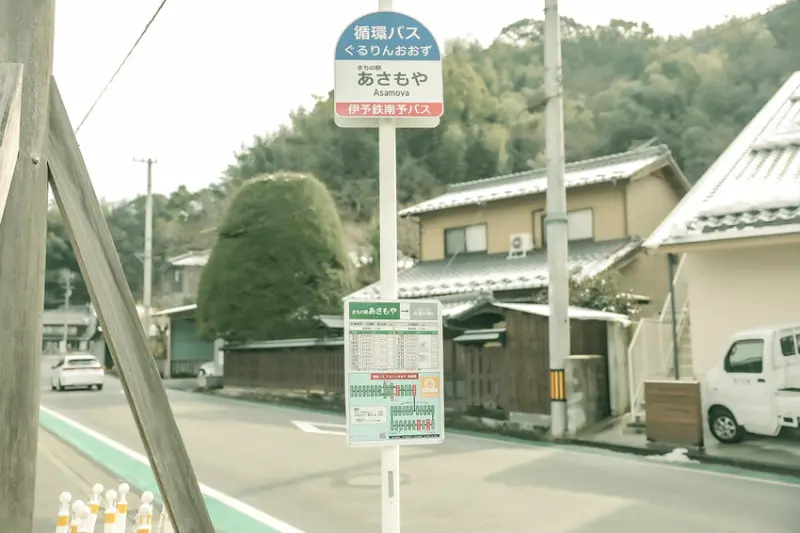 ▲大洲市内循環巴士搭至「大洲まちの駅あさもや」下車後,即可抵達大洲城下町