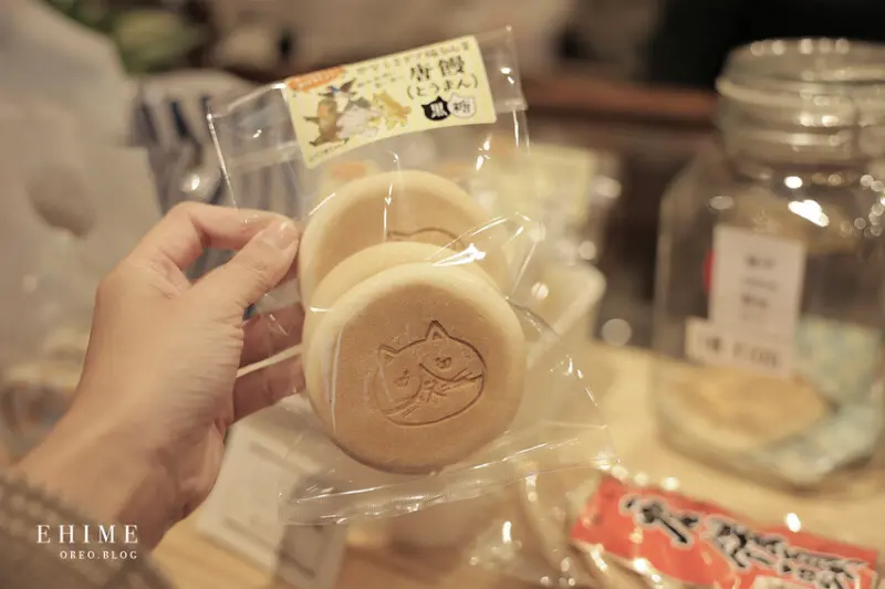 ▲店內販售的唐饅(とうまん),上面壓了貓咪的圖樣,非常可愛!這隻貓叫做「マル」(MARU),是「かなしきデブ猫ちゃん」(中文為悲傷的胖貓)的角色,由小説家「早見和真」和繪本作家「かのうかりん」共同發行的童話繪本系列,其中かのうかりん就是愛媛縣今治市出生的作家。
