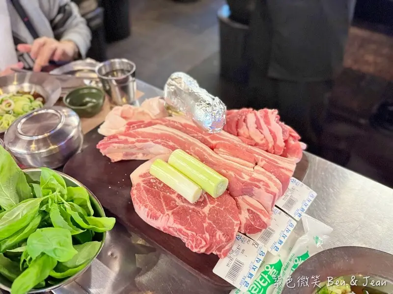 包含:豬頸肉 300g + 豬頰肉 250g + 帶骨五花肉 600g + 羅勒 + 綜合烤蔬菜 泡菜鍋 + 2份拉麵 + 3碗白飯,共$183,000韓元!