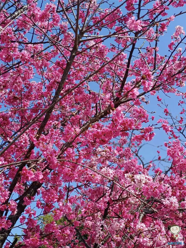 瞧瞧枝頭上怒放的八重櫻,密密麻麻地好幾叢聚在一起,是不是有種數大就是美的感覺😍?
