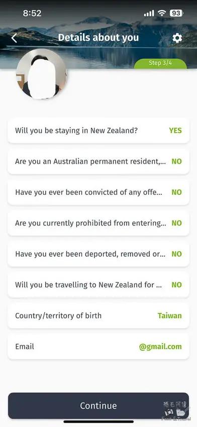 剩下的問題就是問身分國籍、來紐西蘭的原因等等,基本上用翻譯軟體或是網上都有介紹,阿偉就不逐一翻譯了,雖然有答案,但大家還是要看幾眼,說不定哪天改題目了😂最後的Email要記得填上。