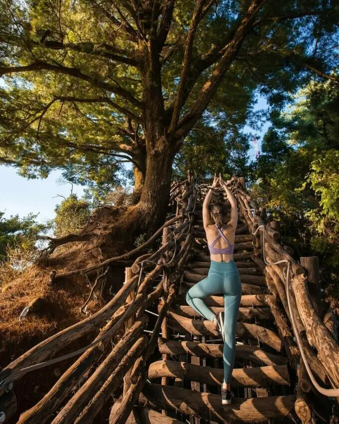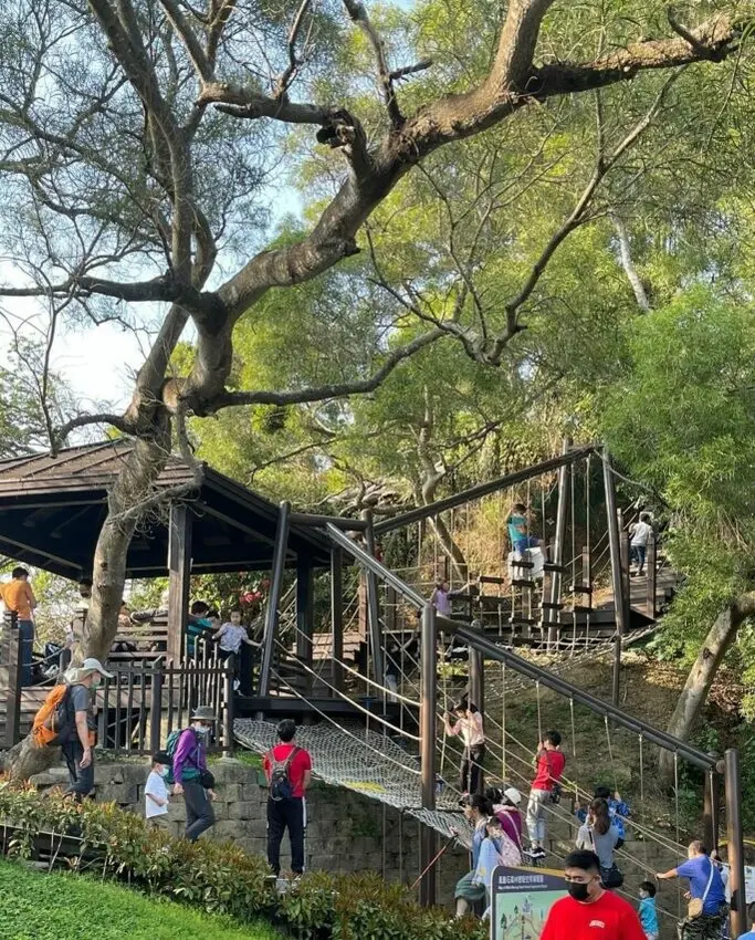 風動石公園內設有超多體能遊具,適合12歲以上的孩童挑戰,泰山攀爬、舞獅跳跳椿、平衡木…等設施,能夠訓練孩童的平衡感和協調力,每樣設施前都設有指示標語,告知如何使用及怎麼避免危險,相當的貼心,其中「蜘蛛爬爬網」是公園內最大也是最有特色的設施,除了體力要好,同時也要有足夠的柔軟度和勇氣才行呢!玩累了還有涼亭可以乘涼,更有多個觀景台,可以居高臨下的欣賞市區景色。