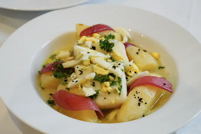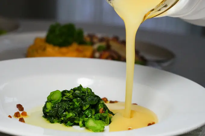 做菜是種藝術,上菜也是一種藝術,這道傳統葡國薯蓉青菜湯,先是以甘藍菜做底,上菜時再倒入綿密又溫潤細緻的薯泥湯為主,很能代表葡萄牙菜的一道湯品。