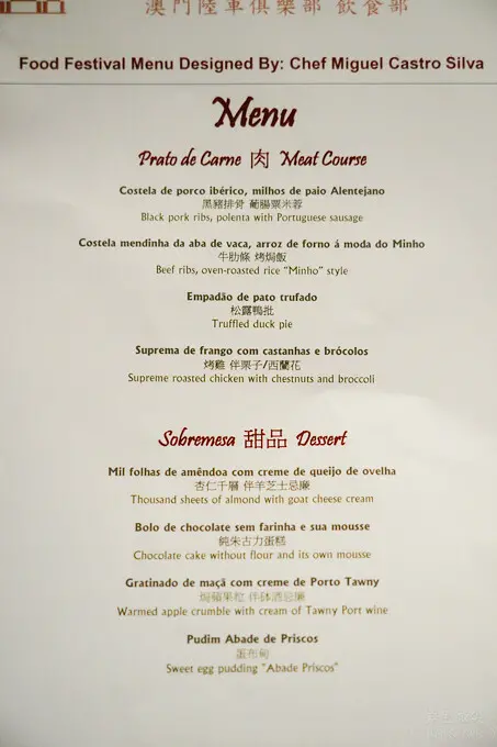 這一次2018澳門美食節邀請了葡萄牙的主廚來客座10天(已於6/17止)。除此之外,因應不同的季節會有不同的主題呈現