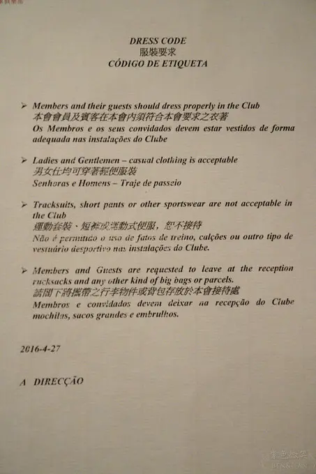 - 註:要穿著smart casual的服裝(短褲、拖鞋不能進入)