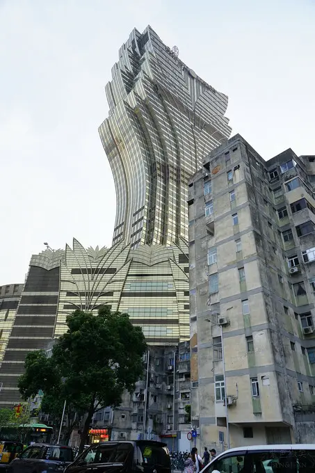 新葡京酒店就在一旁,好像變形金剛!! 和週遭的民房相比,落差真的好大