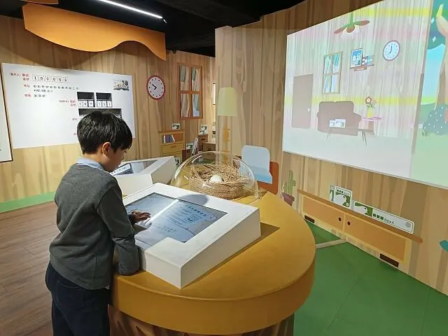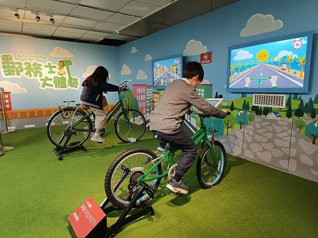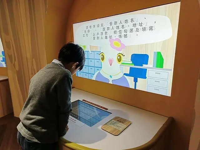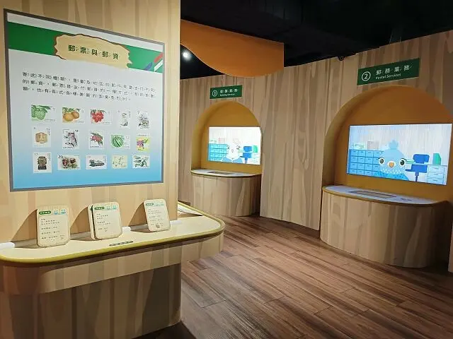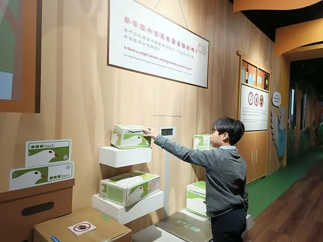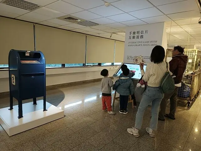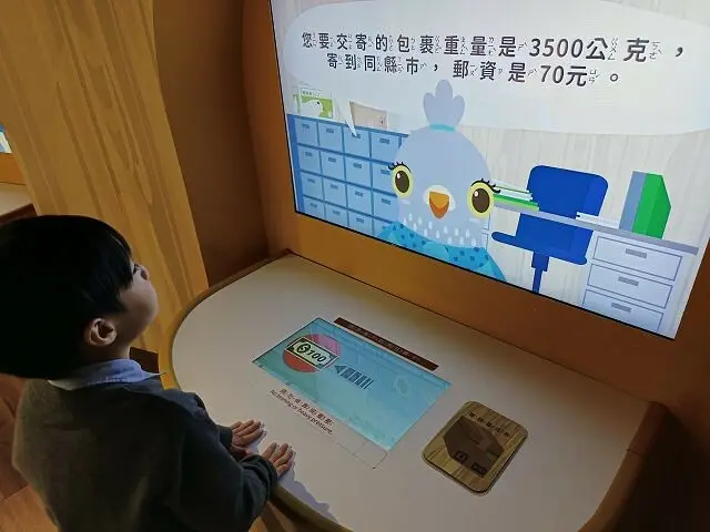 郵政博物館設置的多媒體互動式設備,增添小小孩學習的樂趣。