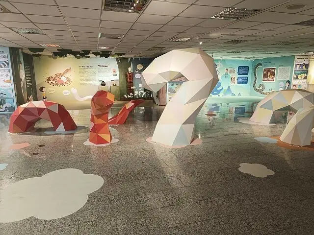 除了四樓的「兒童郵園」之外,其他樓層的展示也非常精彩。「郵政博物館」六樓是特展區,當期展出「蛇麼意思」生肖郵票特展,展區中央還有蛇意象的裝置藝術。