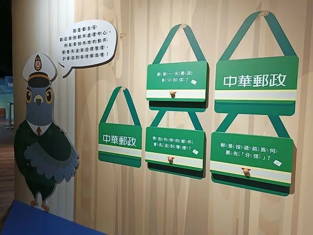 郵件運送的方式非常多元,透過模型展示搭配圖文說明,小小孩也能瞭解。