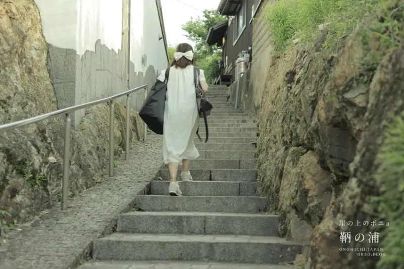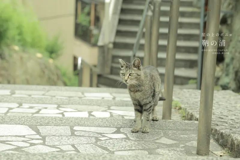 ▲左邊這間就是要入住的民宿啦!階梯上隨時會有浪貓跑出來跟你玩!每隻都好可愛!能看見貓咪的機率比尾道高一點,因為牠們就是旁邊餐廳在餵養的浪貓~