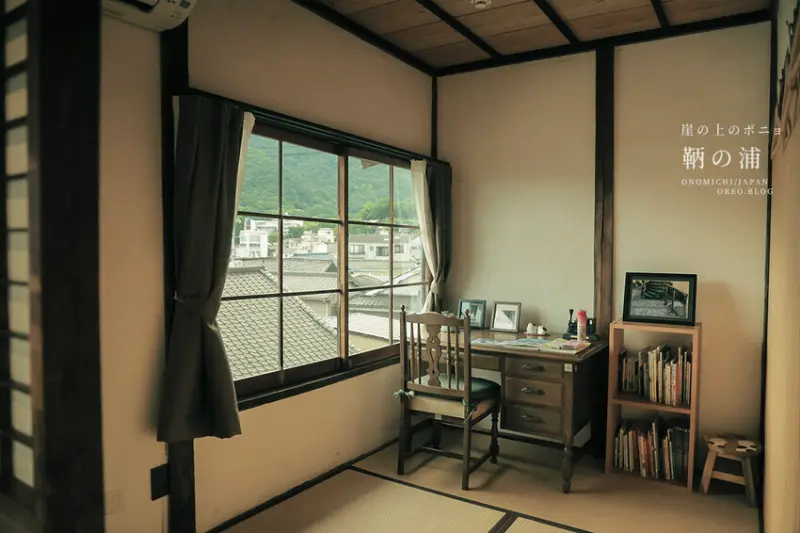 宮崎駿其實也在鞆之浦待過一段時間,在那之後他就創作出了「崖上的波妞」動畫,場景都與鞆之浦十分相似,而這間民宿也和宮崎駿很有淵源,這間民宿辦理入住時需要到「御舟宿 いろは」這個民宿辦理,而這個地方當年也是坂本龍馬跟人談判的地方,過後有一段時間被荒廢了,後來是宮崎駿參與了這間民宿的翻修計畫,所以在「御舟宿 いろは」這裡可以看到當初宮崎駿畫的民宿外觀手稿,可是入住的人才能看到的,可惜我出發前功課做得不夠詳細,事後才知道這件事情!