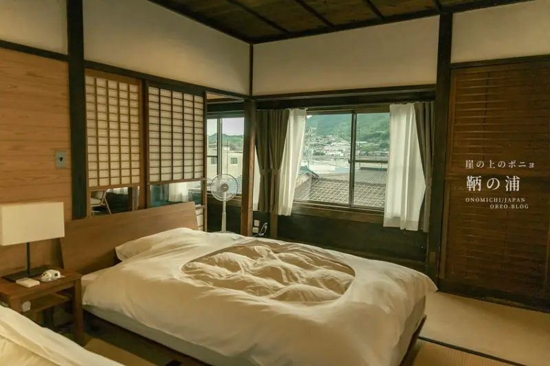 在廣島住過的地方裡面,要說印象最深刻的,一定是在鞆之浦住過的這一晚,當時在找住宿的時候,一看到這間,就立刻排除萬難先訂下來了!看到官網的照片完全被深深吸引!這個窗景有伊根漁港的感覺,位在小山崖上,又因為是獨棟,一天只接待一組客人,所以也不太好訂,我去的五天裡面只有一個晚上有房間,二話不說直接訂下來!