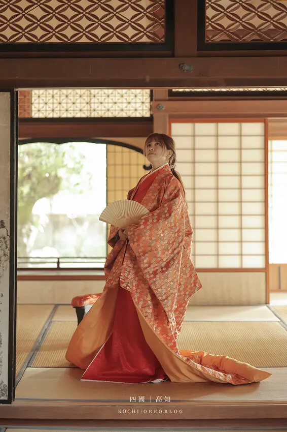在高知還可以體驗日本的傳統公主服裝!而且價格也太便宜了只要1000日幣呢!而且換好衣服後,就可以原地在岡御殿內拍攝,這裡本身就很好拍!根本不用到處找景點走到心累~這裡也沒人跟你搶背景,也太好了吧!