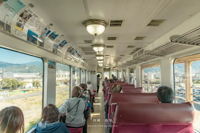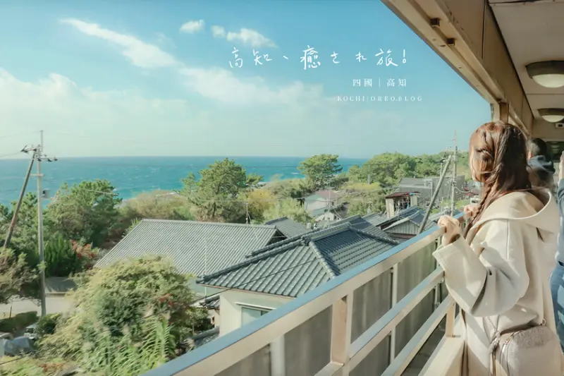 從高知市區,可以搭乘「土佐黑潮鐵道、後免奈半利線」前往高知東部,這台列車有一整條開放式的觀景陽台長廊,陽台面對的是土佐灣及太平洋海岸,沿途除了漂亮的海景,還有許多日式房屋,以往都是隔著窗戶欣賞的,這次居然可以就這樣站在簍空的窗邊(沒有窗戶!!),吹著海風看海景!也太值得搭了啦!!