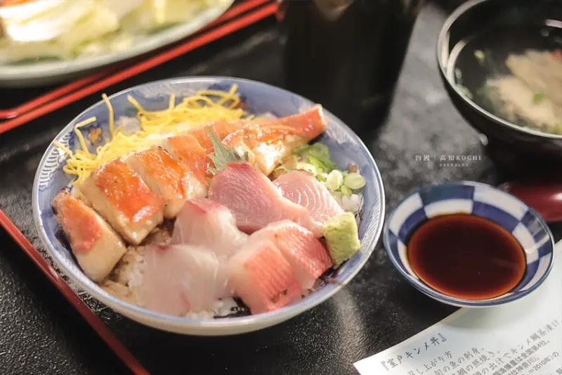 在室戶其實也有很多餐廳有販售金目鯛丼飯,但是要能被稱作室戶金目鯛丼飯,還得達到三個條件: