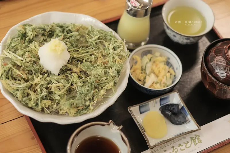 在高知還有一樣推薦吃的名物,那就是ちりめん丼(吻仔魚丼飯),有分成兩種,一種是「釜あげちりめん丼」,是直接把吻仔魚鋪在飯上的,另外一種是「かき揚げちりめん丼」,就是我照片這種,配上蔬菜一起做天婦羅油炸過的,我覺得後者比較好吃!搭配店家的醬汁很下飯!也是這間餐廳的名物!這間餐廳就在土居廓中這裡,可以順道當午餐哦!