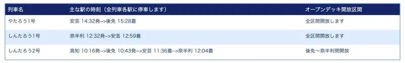 (しんたろう2号從高知也可以搭乘哦!但是觀景陽台只有後免站-奈半利站之間才有開放~)