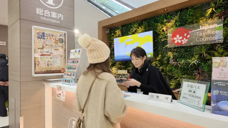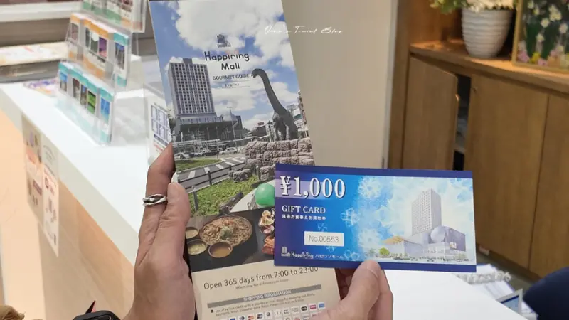 ▲福井樂享周遊券之「Happiring」館內通用優惠券,兌換地點在福井站出口右後方 Happiring大樓的一樓服務台