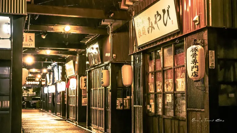 這裡是晚上喝酒吃宵夜的好去處,也是旅人可以互相交流的屋台村,有鐵板燒、拉麵、啤酒、串燒店等等各式各樣的店舖,晚上點了燈後氣氛也很不錯,推薦吃飽後來走走~位置也就在蘆湯旁邊而已。