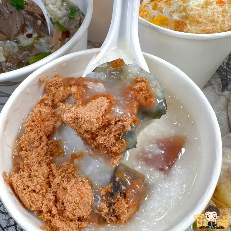 皮蛋粥(小40元)有甜甜的肉鬆和皮蛋香,大小朋友都會很喜歡