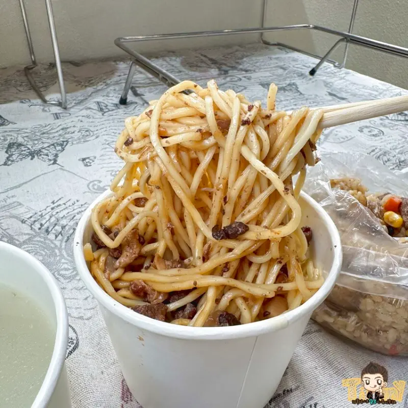 炒麵即使涼掉,都還是有Q的口感,搭配鹹香滷肉汁,很有古早味,讓人一口接一口吃不停~