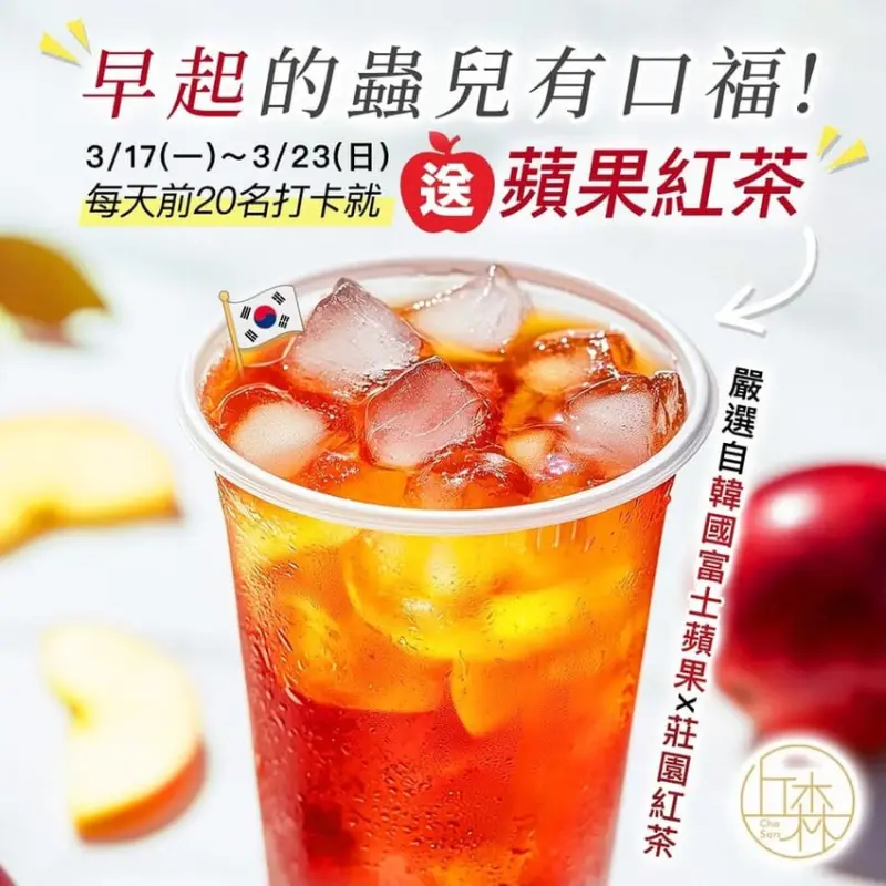 🍎 早起的蟲兒有口福!每天前20 名打卡就送蘋果紅茶! ✨