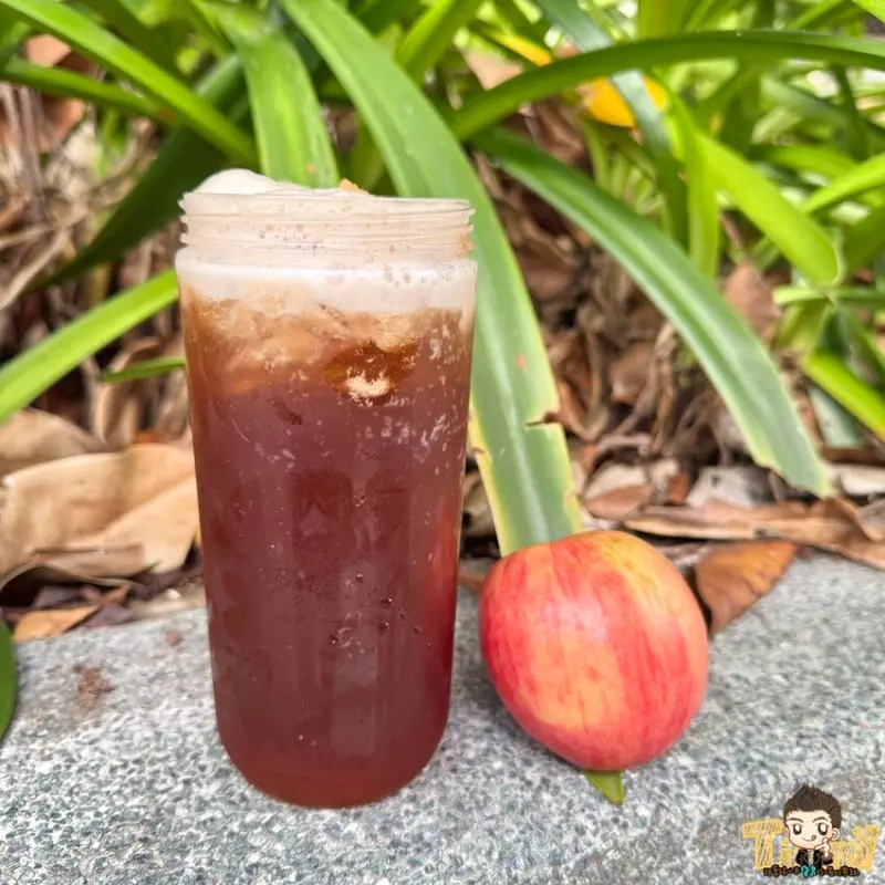 來自韓國進口的富士蜜蘋果醬搭配莊園紅茶(甜度固定),經過傳統手搖調和,茶湯表層有細緻泡沫,帶來層次豐富的口感與芳香