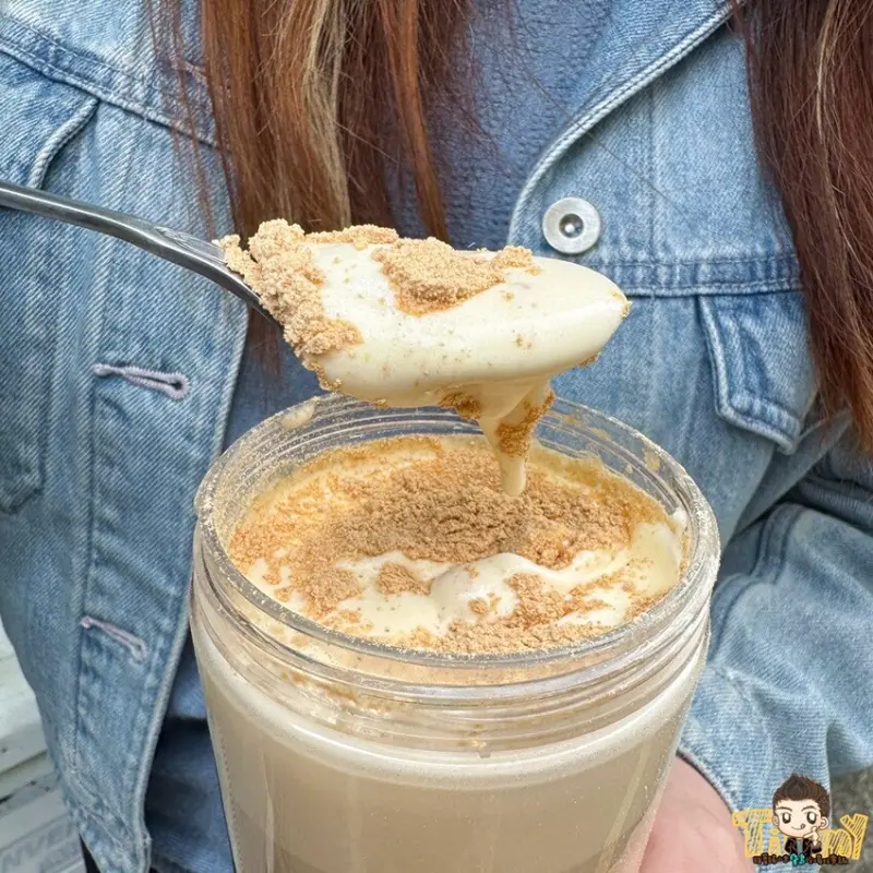 以優質烏龍茶為基底,搭配鮮乳和手工芝士奶蓋,表層鋪上香氣四溢的黃豆粉~