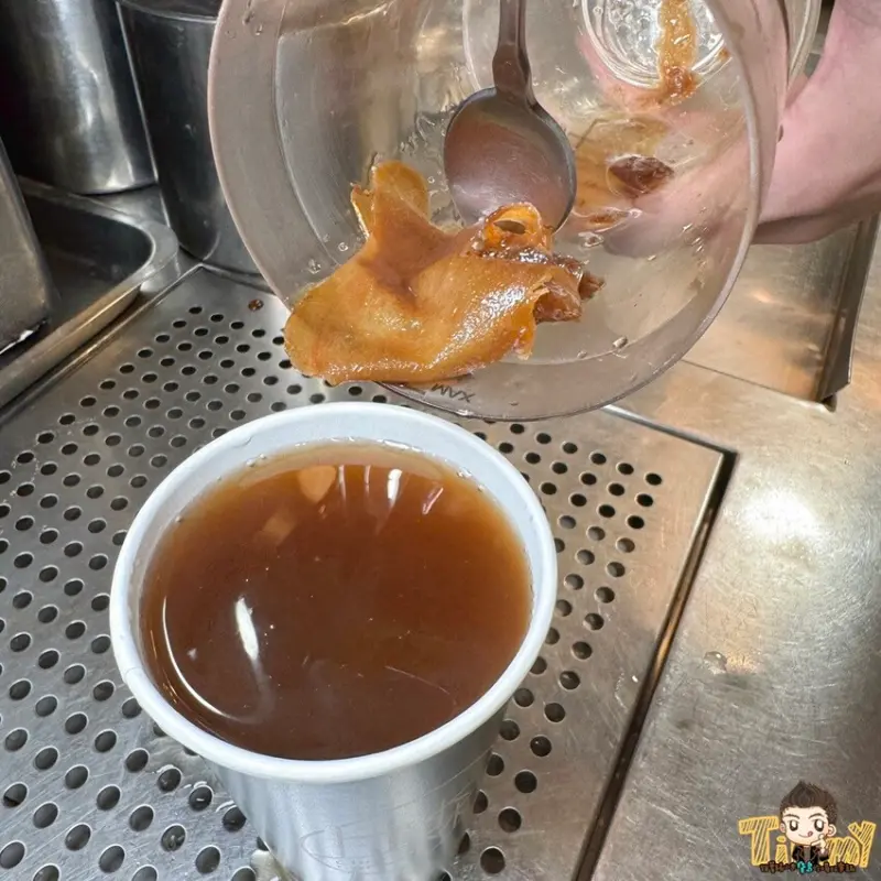 以薑母茶、黑糖和薑片調配而成,喝起來帶有黑糖甜香,不會太嗆辣,冬天喝上一杯溫暖在心頭