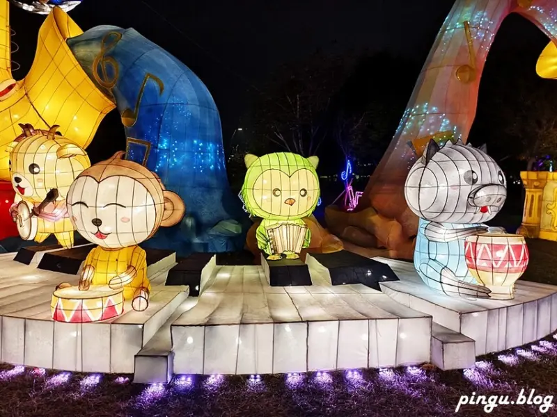 走過鋼琴會有不同的燈光效果,讓小朋友可以跟花燈做互動,與動物們一起加入歡樂的氛圍~