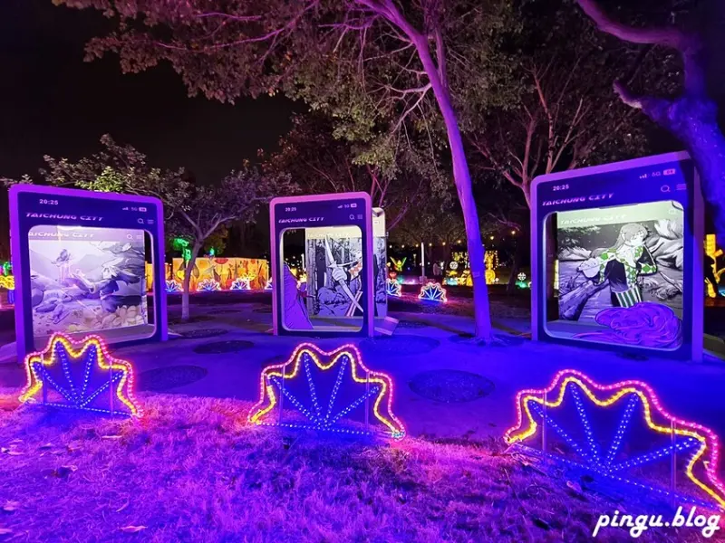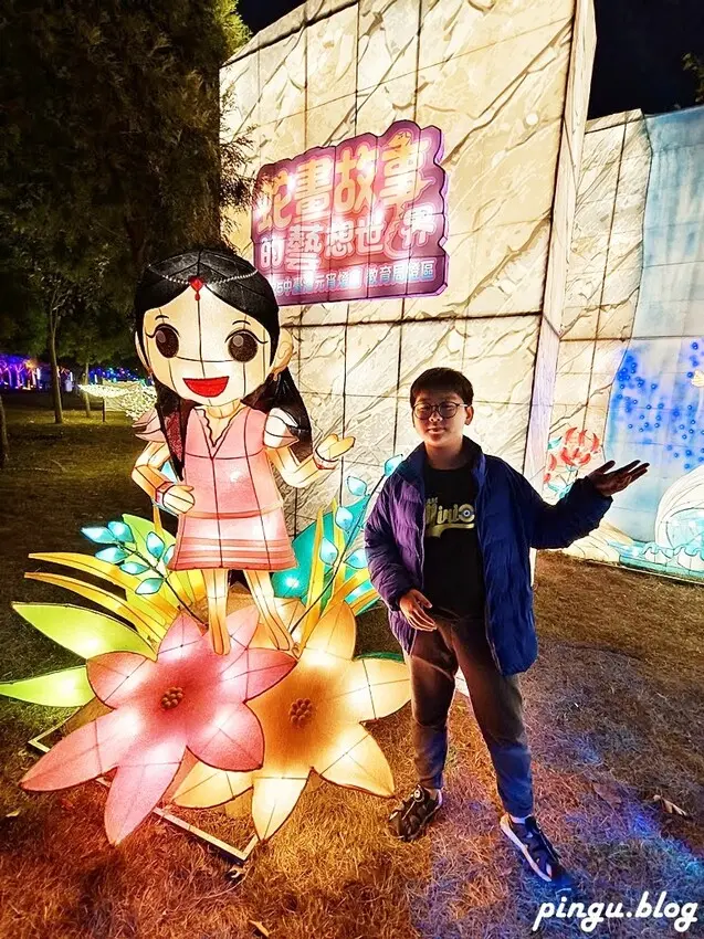 今年臺中燈會以節慶經濟、光影藝術、傳統工藝、永續發展、幸福氛圍、城市行銷等六個面向為核心,規劃九大主題燈區,範圍相當大,其中臺中市教育局的「蛇畫故事燈區」位於8號燈區處,就在中央公園白色藝術牆旁,離P4地下停車場比較近~