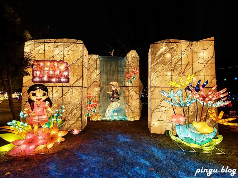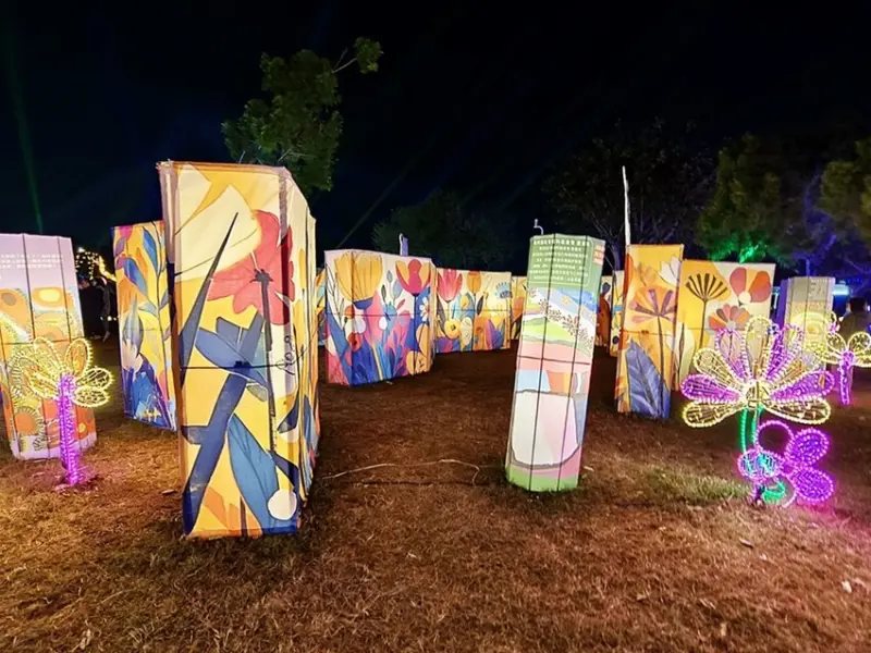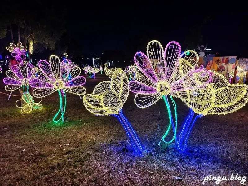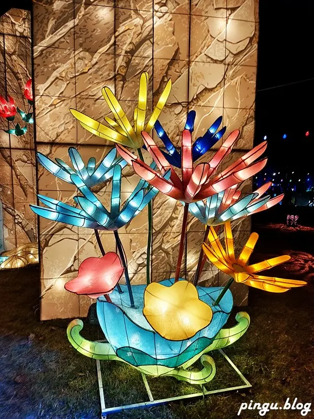 沿途有一整片不同的花卉花燈,有蒲公英、奇異小花小草等一整區超好拍,美麗的花燈交織出夜晚美麗的樂章~