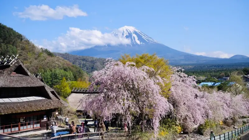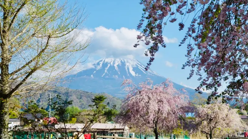 東京近郊景點,除了來到河口湖看富士山,推薦大家可以一起玩西湖,「櫻花+富士山絕景」西湖療癒之里根場真的太美了,每年4月中後是賞櫻的最佳時間,可以看到很美的合掌屋村落與富士山和櫻花同框,非常值得來玩喔!東京近郊賞櫻絕對不能錯過櫻花和富士山,今年就安排一趟富士五湖之旅吧!