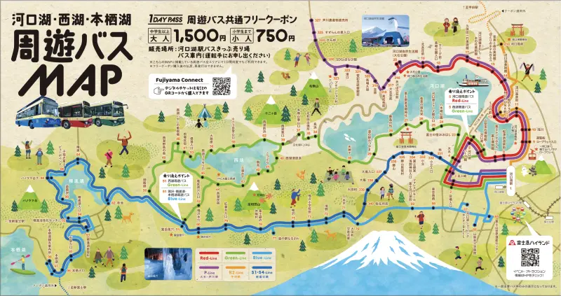 不開車也可以輕鬆玩河口湖!東京近郊必遊景點,世界遺產富士山腳下的富士五湖,不用開車自駕也能輕鬆玩,只要搭乘富士五湖巴士「河口湖・西湖・本栖湖 周遊公車」,一日券不限次數搭乘成人1500日幣。
